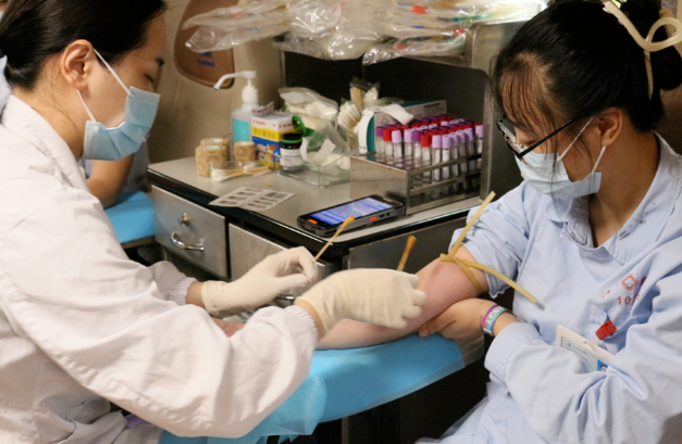 在赵书记的带领下,医院的党员、职工们积极响应,纷纷加入到无偿献血的行列中。他们之中,既有院长办公室的领导,也有临床一线经验丰富的医生,夜以继日辛劳的护士,以及默默支撑日常运营的行政后勤人员,他们每一个人都怀揣着对党的忠诚和对社会的大爱,用实际行动诠释了“医者仁心”的深刻内涵。