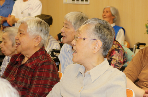 随后,现场进入了合唱红歌的环节。患者们共同演唱了《唱支山歌给党听》《学习雷锋好榜样》《北京的金山上》等经典红歌。嘹亮的歌声在医院的大厅内回荡,表达了对党的感激和祝福。