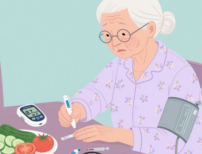 定期检查糖化血红蛋白(HbA1c,每3-6个月),了解近3月平均血糖水平。目标值因人而异(一般<7.0%),需医生制定。