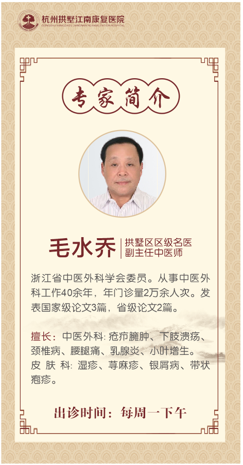好消息!拱墅区区级名医毛水乔将每周一来院坐诊!