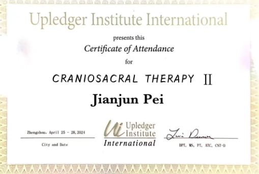 2024年参加Upledger国际学院颅骶椎疗法课程培训,并获得合格证书