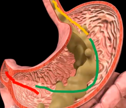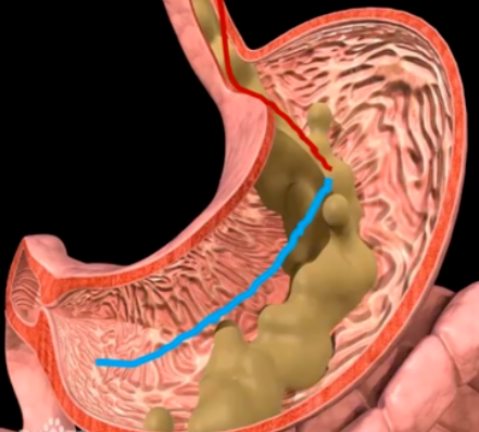 当肠管置入60cm的时候就过了幽门的位置,60-75cm是幽门到十二指肠的位置,这是置管中最难的地方,此处置管速度要慢,且有一个适当的旋转,便于通过幽门口。