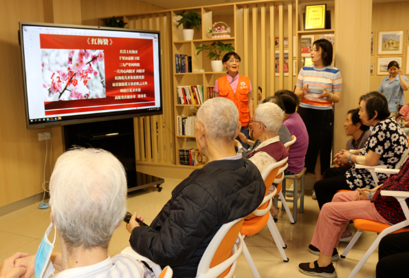 随后,现场进入了合唱红歌的环节。患者们共同演唱了《唱支山歌给党听》《学习雷锋好榜样》《北京的金山上》等经典红歌。嘹亮的歌声在医院的大厅内回荡,表达了对党的感激和祝福。