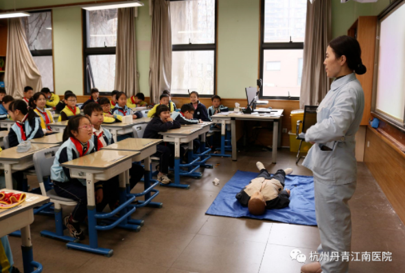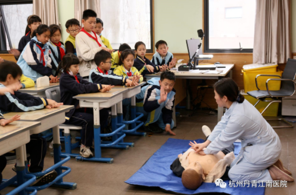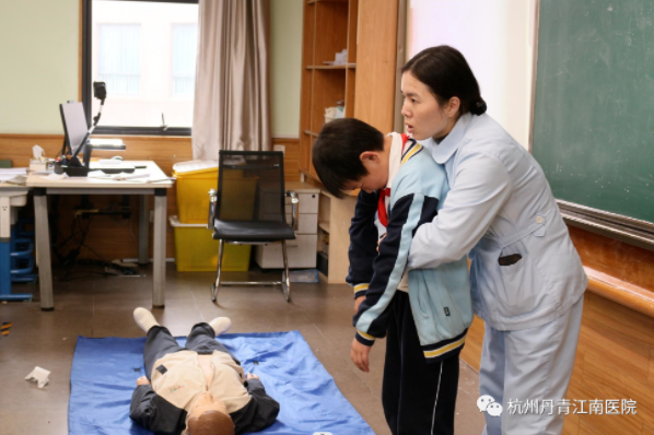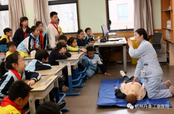 为了在校园普及急救知识,传播救护技能,让小学生从小树立安全意识与救护意识,3月30日下午,我院五病区谢福清护士长为杭州市胜利实验小学的学生们开展了一场生动而又实用的“心肺复苏&海姆立克急救”知识讲座。
