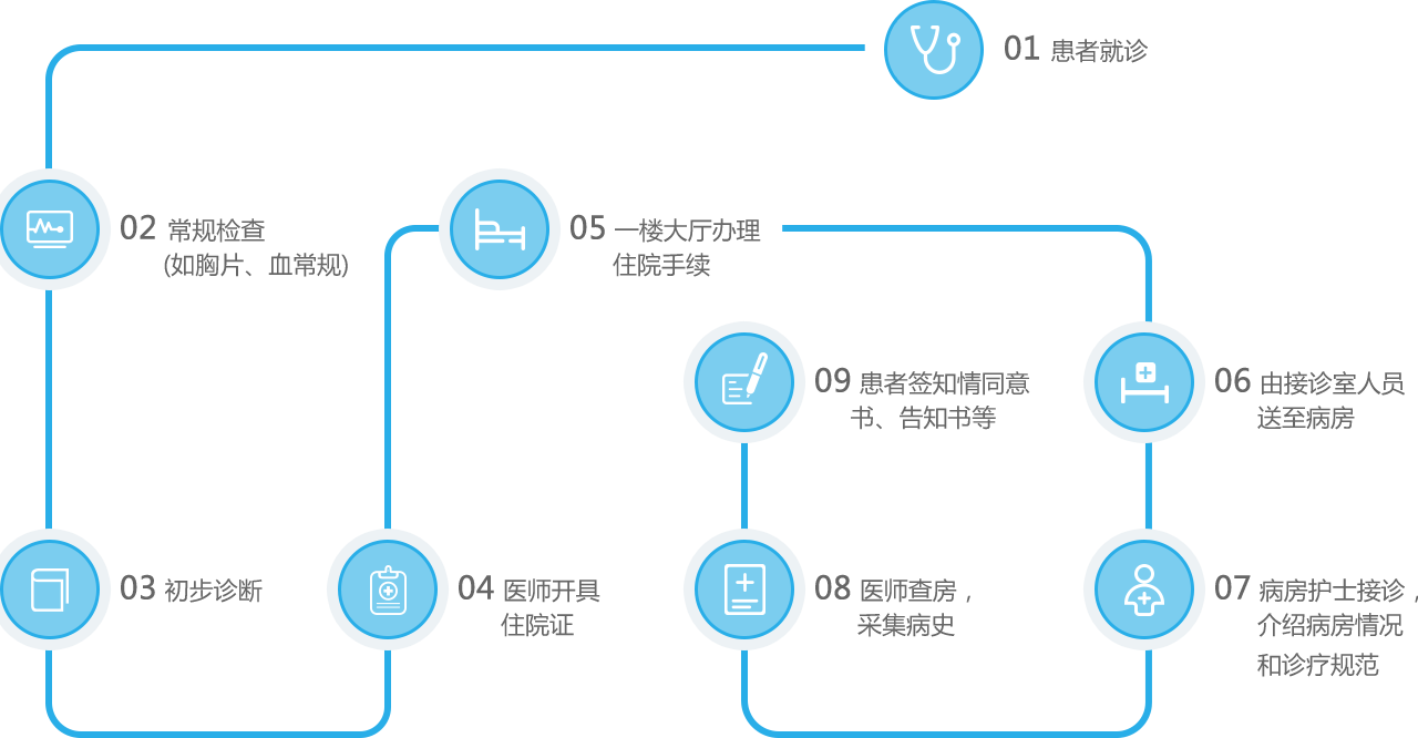 3.办理常规患者入院手续时间为:周一至周日8:00-17:00;