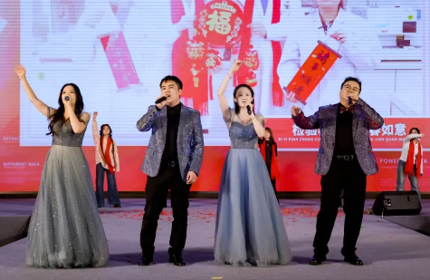 节目之间穿插了“你做我猜”“知识大考验”“摇一摇万马奔腾”等团队与全员游戏。台上默契配合、机智应答,台下摇手机比手速、笑声不断。互动不仅拉近了彼此距离,更彰显出团队的凝聚力与活力。
